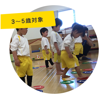 外部講師による指導を月1回行います。様々な運動遊具を使い、筋力、体力、バランス感覚をきたえます。また、待っている間や話を聞く時の姿勢も意識して行うようにしています。