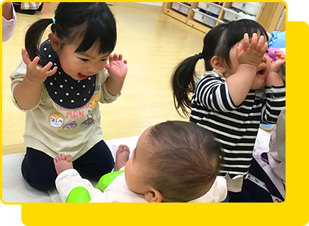 大好きなお家の方に抱っこされたり、ぎゅっと包み込まれる中で 愛情をたっぷり受け、その中で沢山のことを育み、そのお手伝いを保育園で少しでも出来たらと考えています。毎月、園行事や製作等に親子で参加して頂く中で、保育園での生活や、様子を知り、楽しさを味わったり、興味を持って頂けたら嬉しいです。皆さん、ぜひ遊びに来てください。(お申込みは、TEL:048-762-6712まで) お子様のお名前、年齢、性別、連絡先をお伝えください。