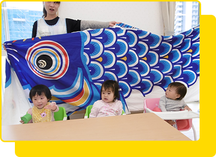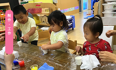 発達に合わせて内容を変えた壁面制作や工作を行います。 視覚と手先の運動の統合で、学習意欲と能力の形成につながります。