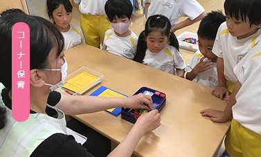 自由遊びの時間では、いくつかの遊びの中から自分の好きな遊びを選択し、主体性を育みます。